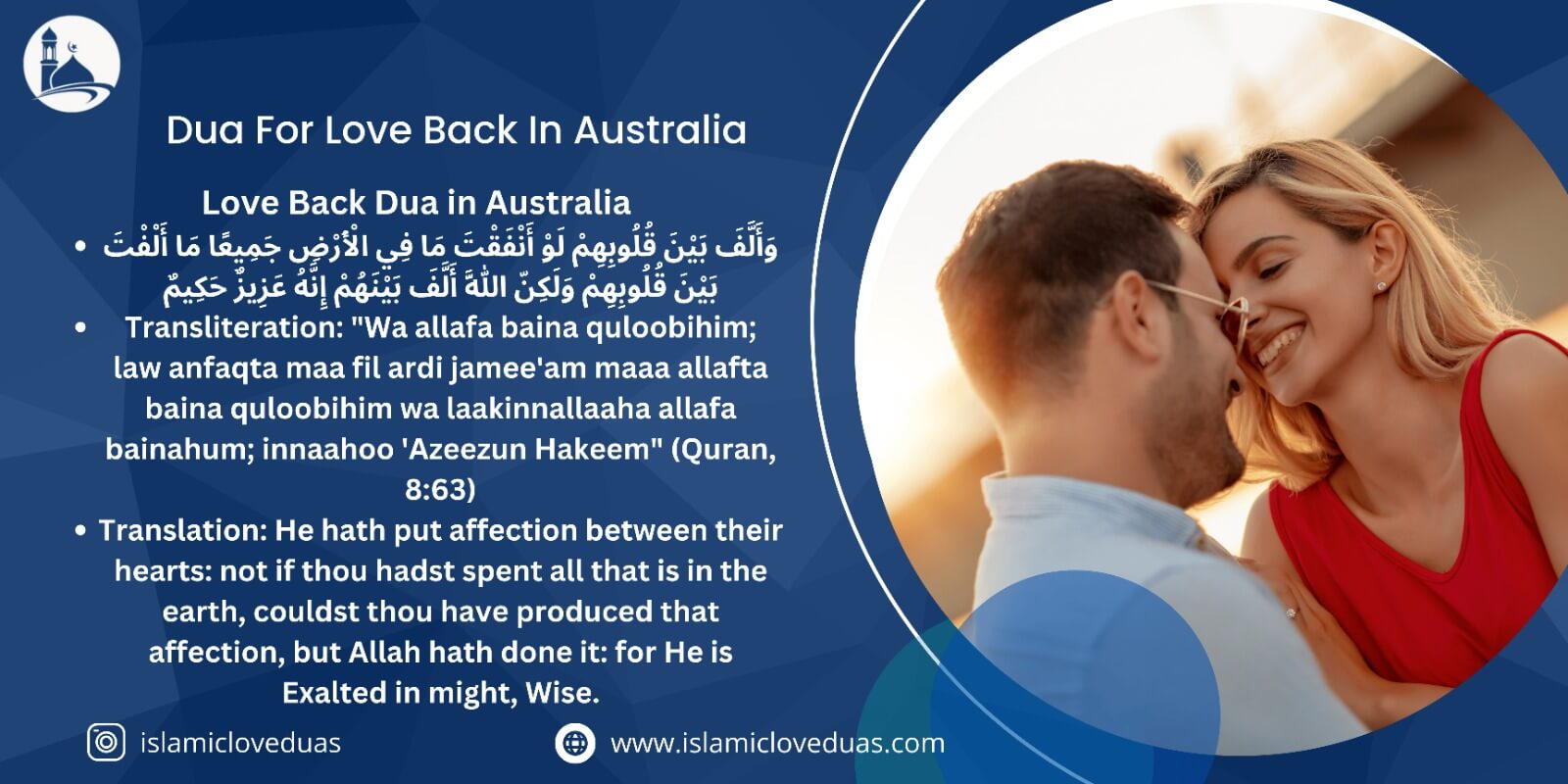 Get Love Back: the main goal of reciting this dua for love back in Australia in your life. When you pray to Allah for something, this shows how much you love that and need it. So Allah will help you when your love and intentions are pure.