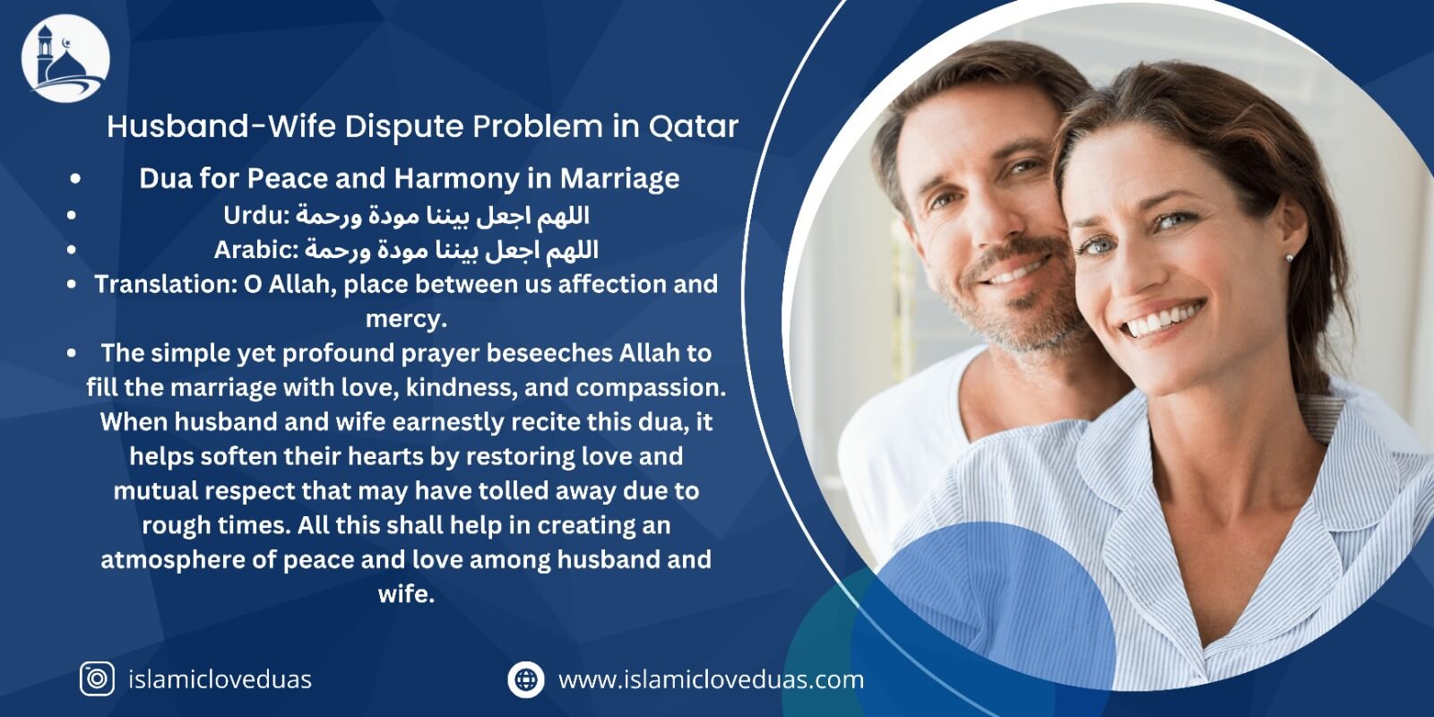 The husband-wife dispute problem in Qatar is something that can happen in any marriage. But, solving these problems needs patience, effort, and trust in Allah. First, both husband and wife need to talk openly and listen to each other. By understanding each other better and praying to Allah, couples can find solutions to their problems. Dua can help bring peace and love back into the relationship.